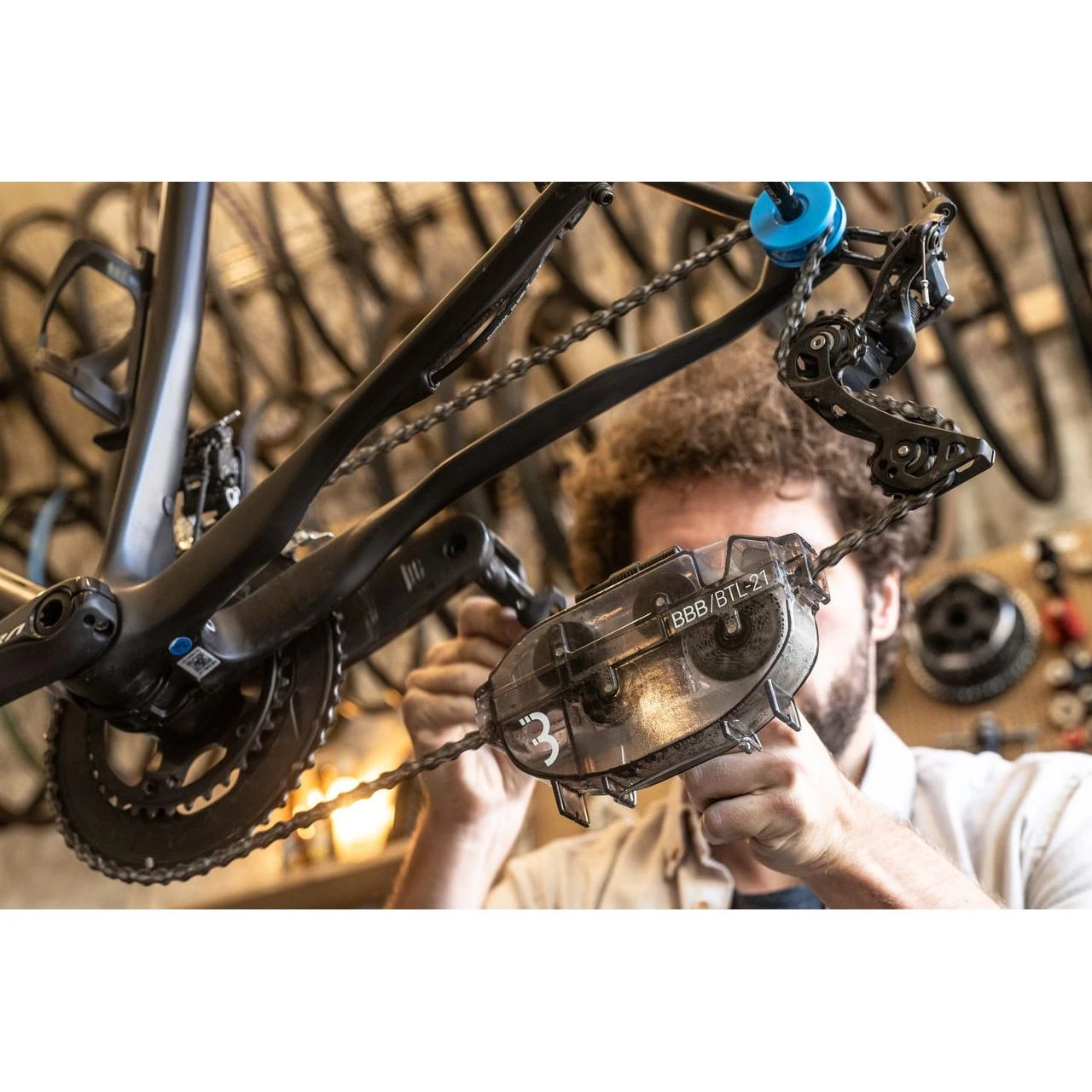 – Modernes Kettenreinigungswerkzeug.