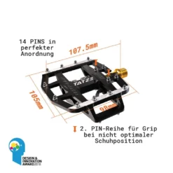 Das TWO-FACE Pedal mit Titanachse ist ein Ă€uĂerst potentes Flatpedal und ein effizientes Klickpedal zugleich. 14 PINÂŽs mit gezielter Ăberhöhung sorgen fĂŒr enormen Grip, aber auch auf der Klickseite wird mit 6 höhenverstellbaren PINÂŽs eine besonders satte Verbindung zwischen Pedal und Schuh hergestellt.Â