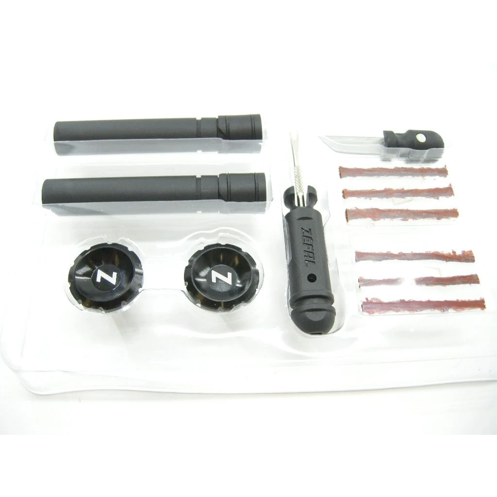 Z Bar Plugs ist ein im Lenker integriertes Reparaturset für schlauchlose Reifen. Lenkerkompatibel: Innendurchmesser zwischen 17,5 mm und 21 mm. Es besteht aus 2 integrierbaren Lenkerenden. In einem Ende befinden sich ein Einführwerkzeug sowie 3 Reparaturstreifen mit einem Ø von 5 mm, während das andere Endstück ein Messer und 3 Reparaturstreifen mit einem Ø von 2 mm enthält. Die Verriegelung am Lenker erfolgt ohne Werkzeuge, durch Drehen des Aluminium-Endstücks. Jedes Element lässt sich je nach Wunsch des Benutzers rechts oder links installieren. Der Z Bar Plugs bietet Mountainbikern mit schlauchlosen Reifen eine dauerhafte Lösung, die sie für den Pannenfall an ihrem Fahrrad mitführen können.